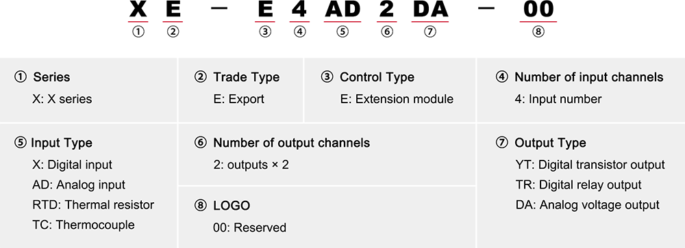 | 4 | X-E4DA-01 | Univerzální rozšiřující modul analogového výstupu řady X, 4AO, 16bitový napěťový výstup/15bitový proudový výstup |