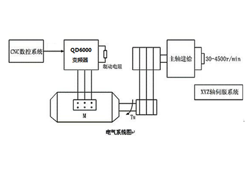 | 04 Úvod do systému: V tomto systému je vřeteno 4KW CNC obráběcího stroje poháněno invertorem RVE32 5,5KW a rychlé brzdění a zastavení je realizováno prostřednictvím externí brzdné jednotky a brzdného odporu. Kolísání rychlosti způsobené změnou zátěže je u vektorového řízení s otevřenou smyčkou velmi malé. | | ||||||||||||||||||
